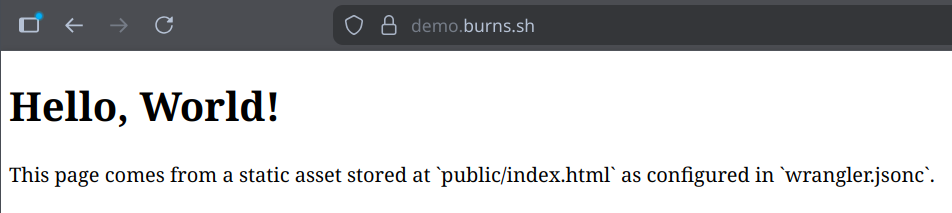 One more step needed in this config. We may not need this now, but we will need to define the custom domain at some point. Since I'm planning to host this at demo.burns.sh, let's add the following to our wrangler.jsonc.
