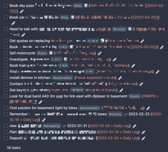 Let's look at my problematic solution. I was using a simple query to easily pull together all of the incomplete tasks from every note.